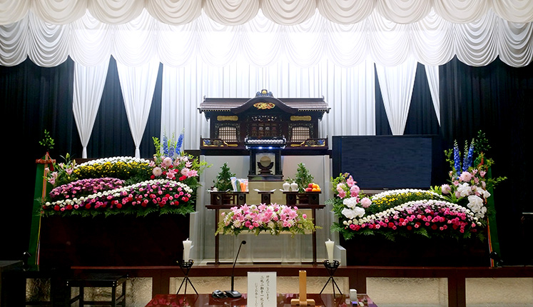 式場仏神前に供える生花、お贈り頂く花輪・灯籠などすべて当方にて承ります。