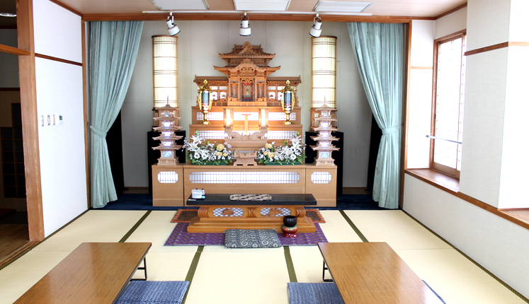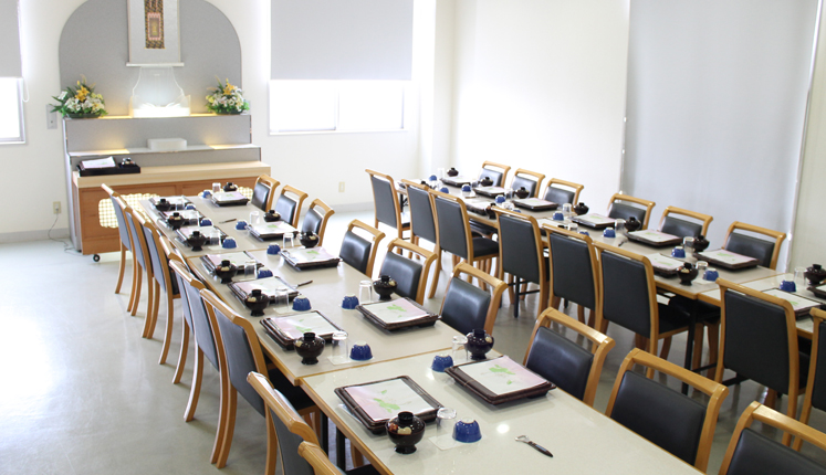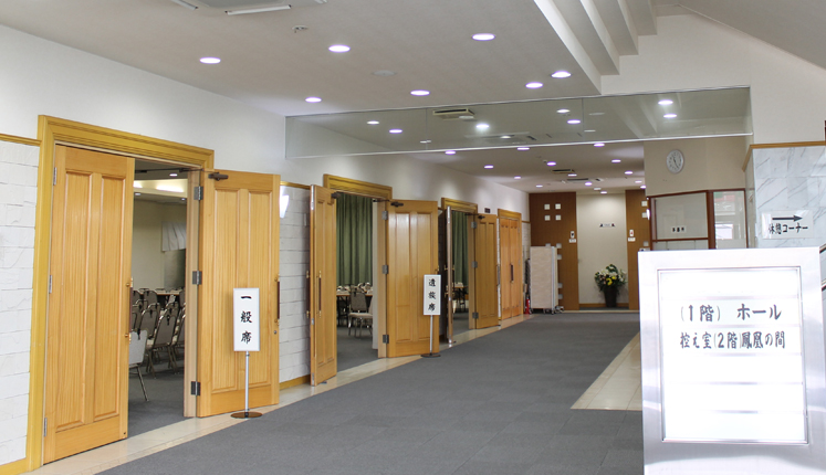 | プリエール本館は広々とした館内で訪れる方々をやさしく出迎えます。 明るさとシンプルな内装で、落ち着いた雰囲気を確保しております。 法事会館では、法事用の和、洋室のお部屋をご準備しております。 |