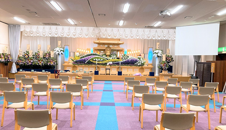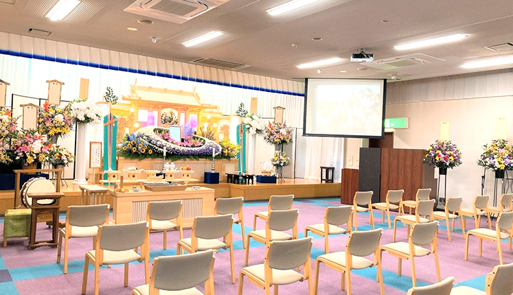 ■心くばりと充実の施設設備 ■広く快適な式場及びロビー ■天気が気にならない室内の葬儀 ■大駐車場(350台) ■ゆったりした通夜サービス、食事室、家族控室 ■大ホール200名、中ホール100名、小ホール70名 |